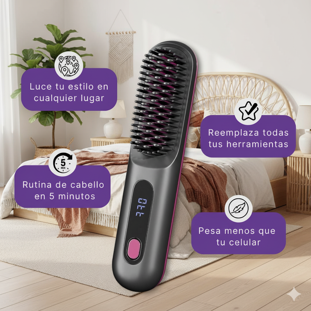 LissBrush™ es la solución inalámbrica que transforma tu pelo en minutos. Sin enchufes, sin esfuerzo... ¡sin excusas!